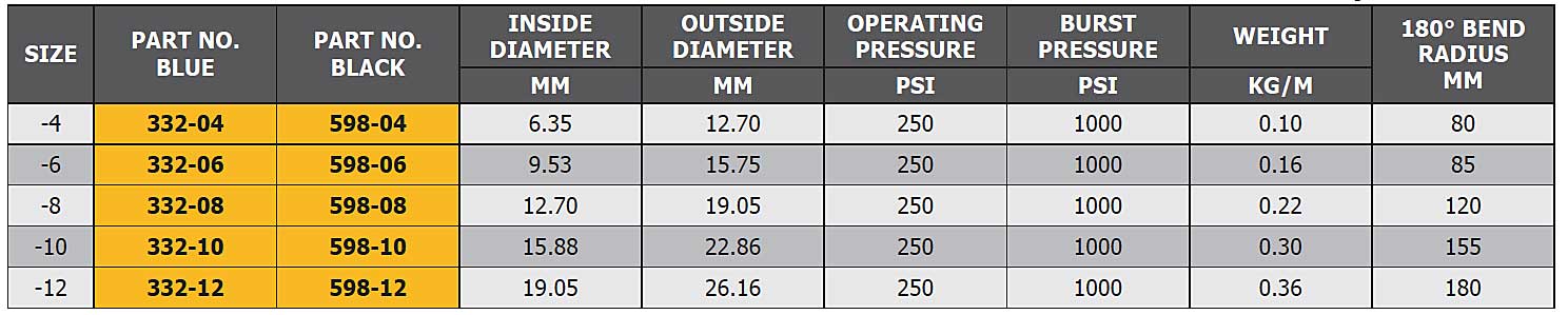 AQP® Socketless 598 Series Hose has a temperature range of -46°C (-50.8°F) to 100°C (212°F)